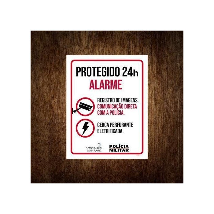 Placa de segurança - protegido 24h alarme polícia (36x46)