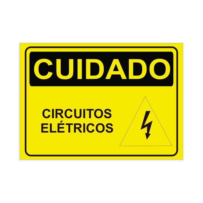 Placa de Sinalização Cuidado Circuitos Elétricos em Pvc