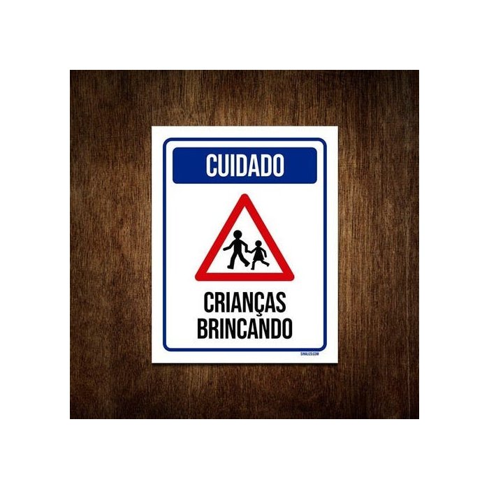 Placa De Sinalização - Cuidado Crianças Brincando 27x35