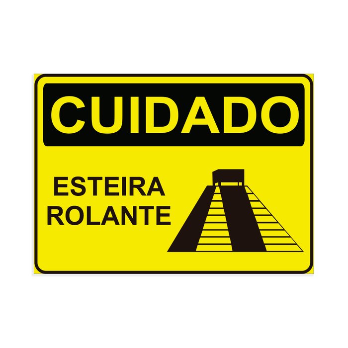 Placa de Sinalização Cuidado Esteira Rolante em Pvc