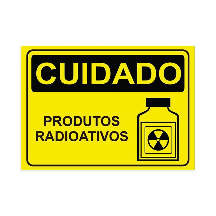Placa de Sinalização Cuidado Produtos Radioativos em Pvc