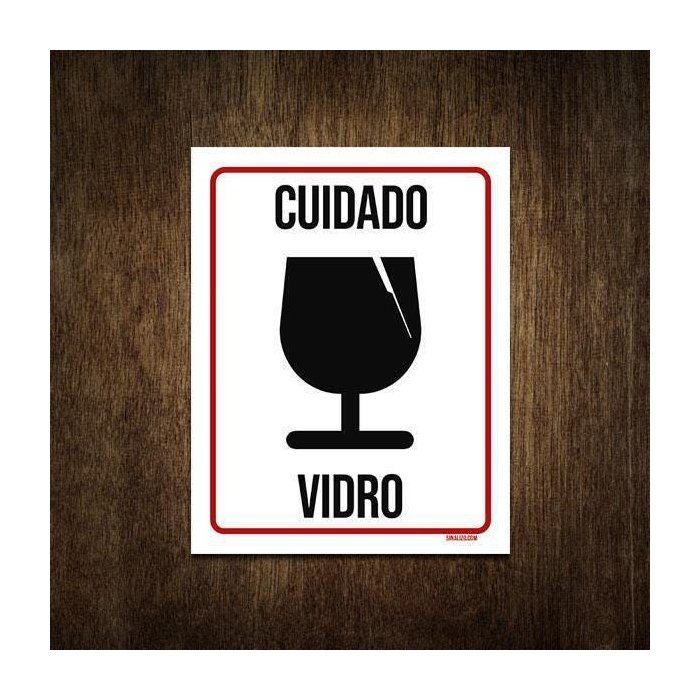 Placa de Sinalização - Cuidado Vidro Frágil 36x46