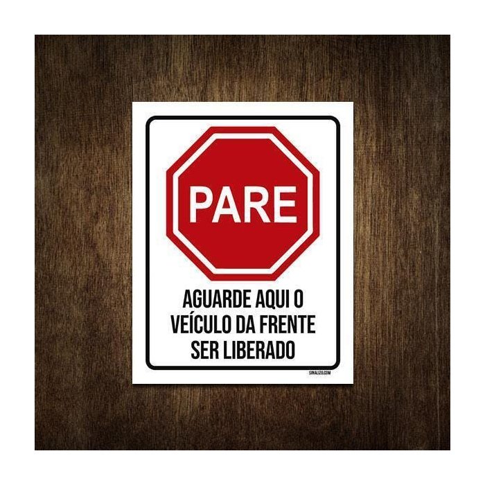 Placa De Sinalização - Pare Aguarde Veículo Da Frente 27X35
