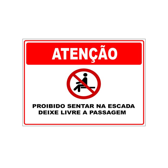 Essa placa é perfeita para sinalizar áreas onde é proibido sentar nas escadas, garantindo a passagem livre e segura. Ideal para uso em locais públicos, como prédios, shoppings, escolas e empresas, essa placa ajuda a evitar acidentes e a manter a organização do ambiente.