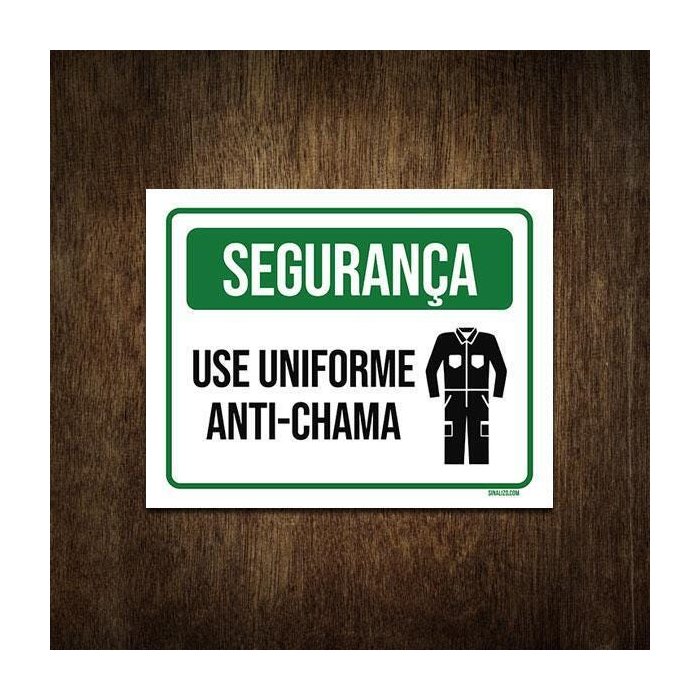 Placa de Sinalização Segurança Use Uniforme Anti-chama 27x35