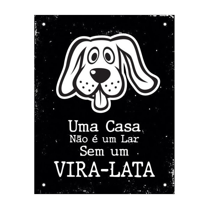 PLACA DECORATIVA UMA CASA NÃO É UM LAR SEM UM VIRA-LATA 18X23CM