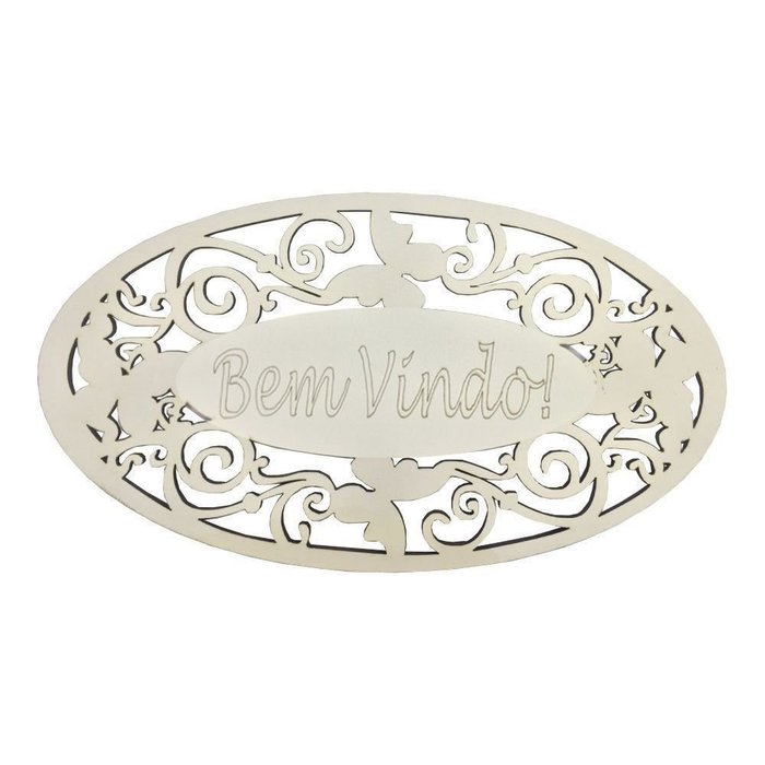 Placa Decorativa Bem Vindo Com Arabesco 22x12 MDF 3mm Branco - D'Rossi DRossi Placa Bem Vindo