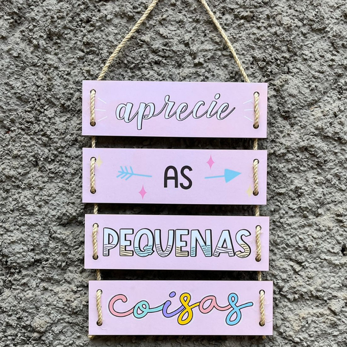 Placa Decorativa em Mdf com Corda Aprecie As Pequenas Coisas