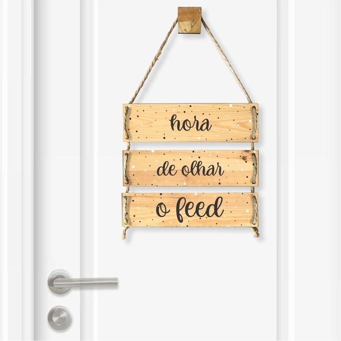 Placa Decorativa Estampa Madeira Hora de Olhar o Feed com Corda Sisal - 40x25cm -