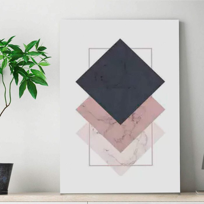 Placa Decorativa Geométrico Polígono Mármore Rose com Preto e Branco-30X45Cm