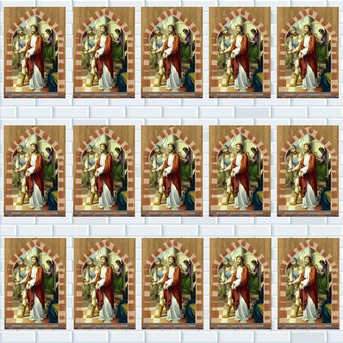As Placas Decorativas são muito versáteis, além da decoração tem a religiosidade que ela nos traz. Material: 15 placas em MDF no tamanho 20x29cm . Imagem, o processo é feito através de impressão térmica, garantindo qualidade e cores vivas. Nesse processo a imagem não desbota. NÃO É ADESIVO. Durabilidade incalculável, da estampa e qualidade no produto final. A placa já vai com fita dupla face, basta retirar e aplicar na parede, não é necessário furar. Limpeza: Não usar produtos abrasivos e nem produtos químicos.
