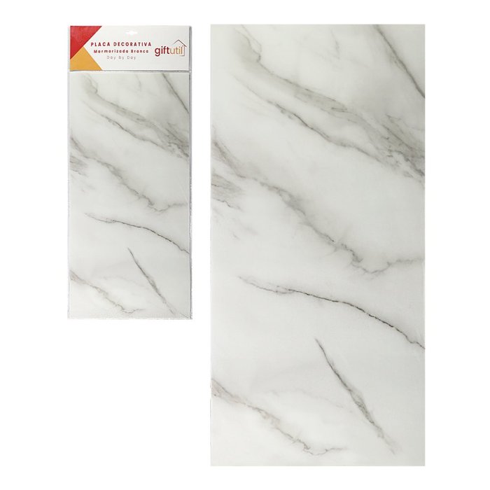 Placa Decorativa Papel de Parede Marmorizada Branca 30x60cm Branco Marmorizado