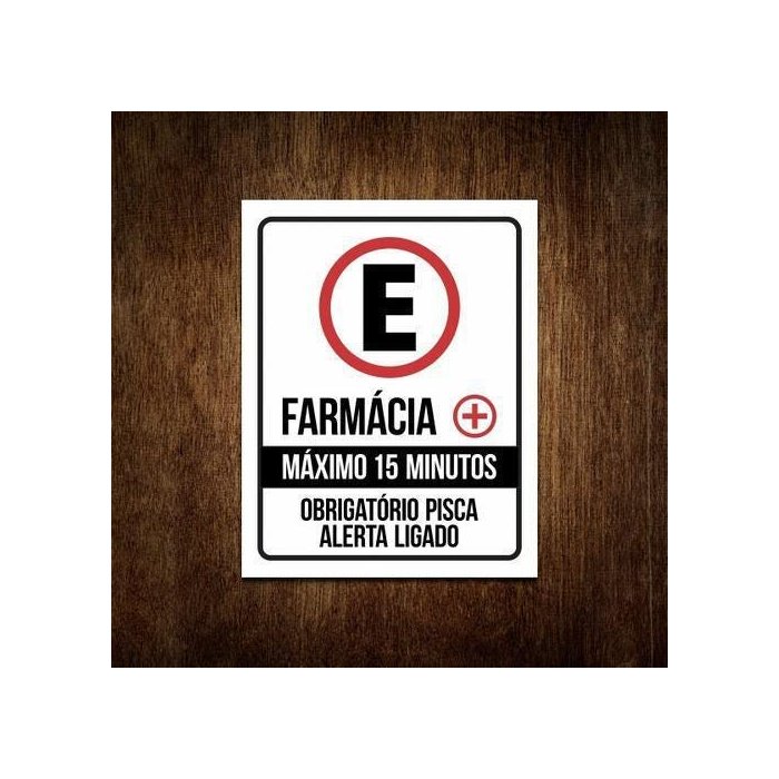 Placa Estacionamento Farmácia Máx 15 Minutos 36X46