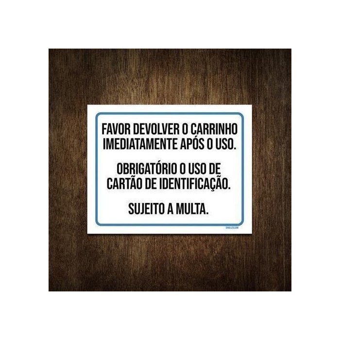 Placa favor devolver o carrinho imediatamente após uso 36x46