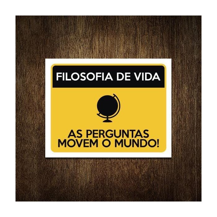 Placa Filosofia de Vida As Perguntas Movem Mundo 36x46