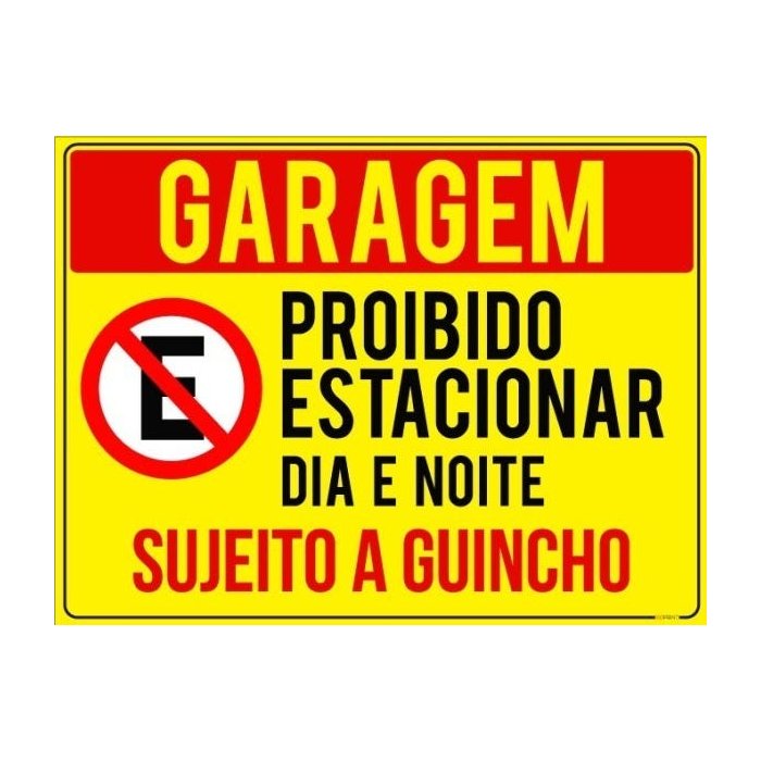 Placa Garagem Proibido Estacionar Dia e Noite Sujeito a Guincho