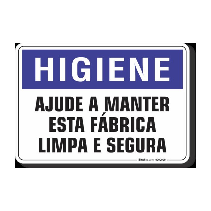 PLACA HIGIENE AJUDE A MANTER ESTA FÁBRICA LIMPA E SEGURA
