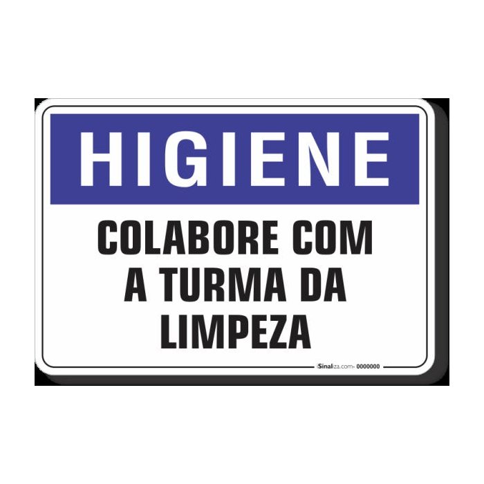 PLACA HIGIENE COLABORE COM A TURMA DA LIMPEZA