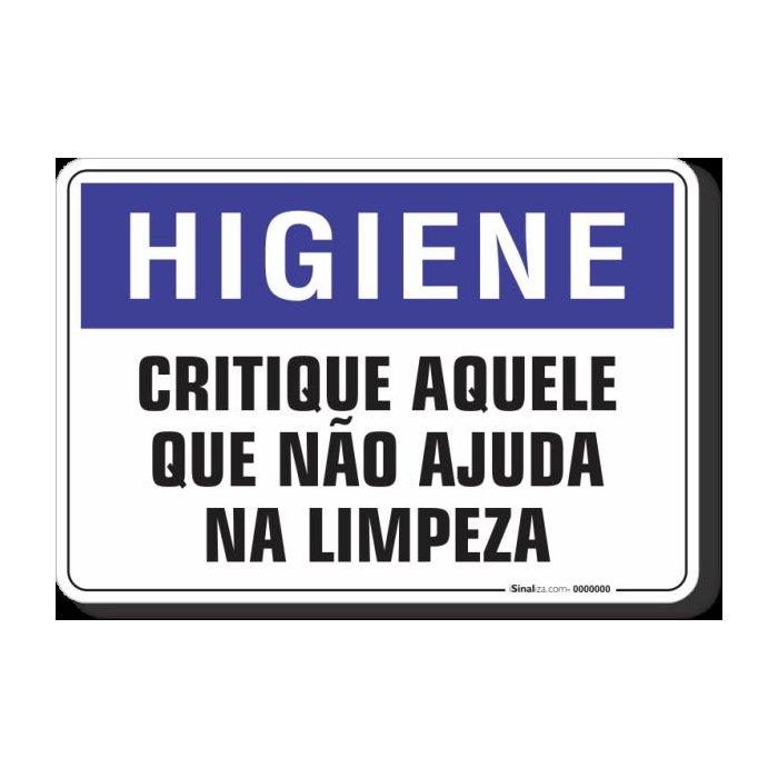 PLACA HIGIENE CRITIQUE AQUELE QUE NÃO AJUDA NA LIMPEZA