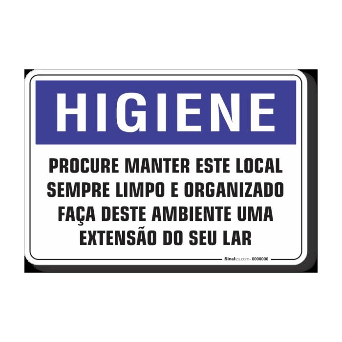 PLACA HIGIENE PROCURE MANTER ESTE LOCAL SEMPRE LIMPO E ORGANIZADO