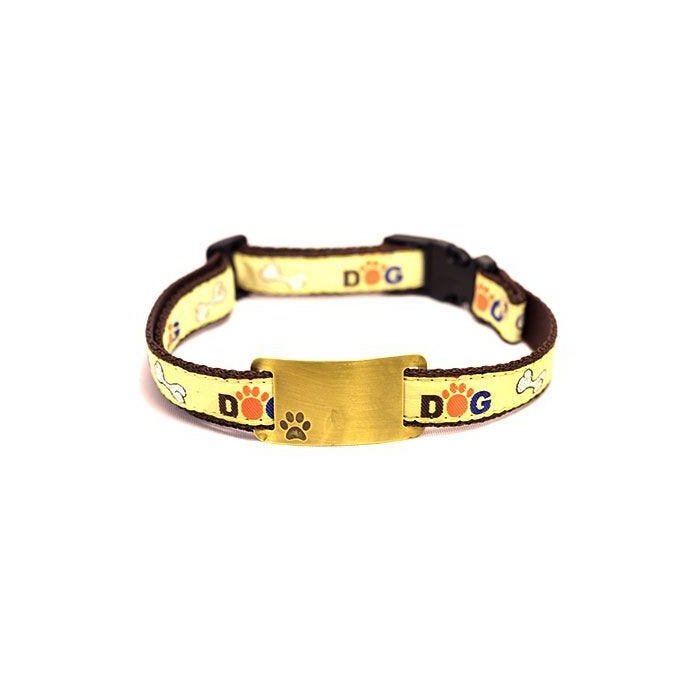 Produzida em latão escovado, a plaquinha da Penduricão permite gravação do nome do animal e seu tutor. Seus encaixes laterais prendem diretamente na coleira evitando assim que com o tempo a plaquinha se perca. Por ser de latão, a peça possui alta durabilidade e fácil manutenção de seu brilho. Acompanha coleira costurada a mão super resistente. Vem com regulador de tamanho para se encaixar perfeitamente em cada pescoço! É importante você medir primeiro a circunferência do pescoço do seu peludo antes de fazer sua compra! veja abaixo as medidas desta peça: Descrição TAMANHO DISPONÍVEL: G Coleira: Largura: 2 cm | Comprimento 68 cm Material: 100% Poliéster e fechos de plástico Placa de identificação Largura 2,5cm | comprimento 6cm Material: Latão escovado