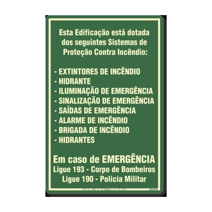 Placa Indicação Dos Sistemas de Proteção contra Incêndio