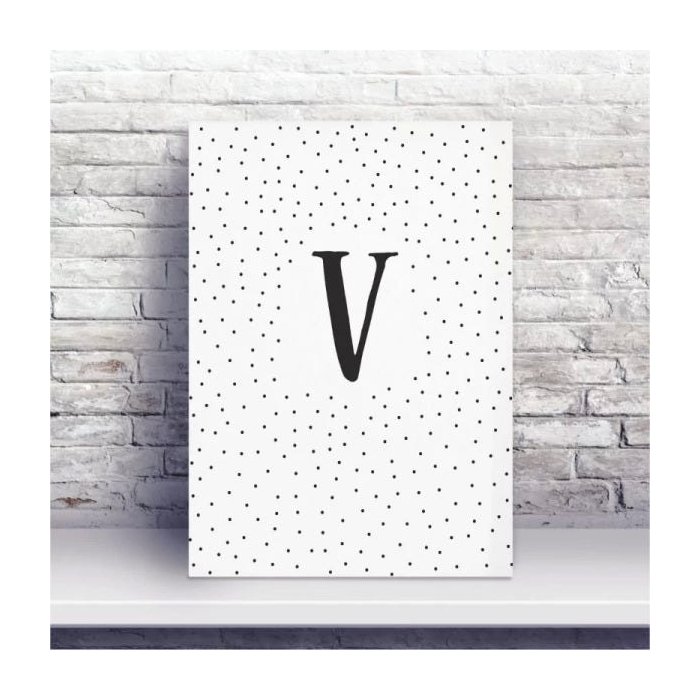 Placa decorativa, Placa MDF bebê letra V pontinhos preto.