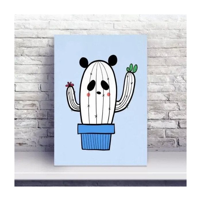 Placa decorativa, Placa MDF cacto panda fundo azul.