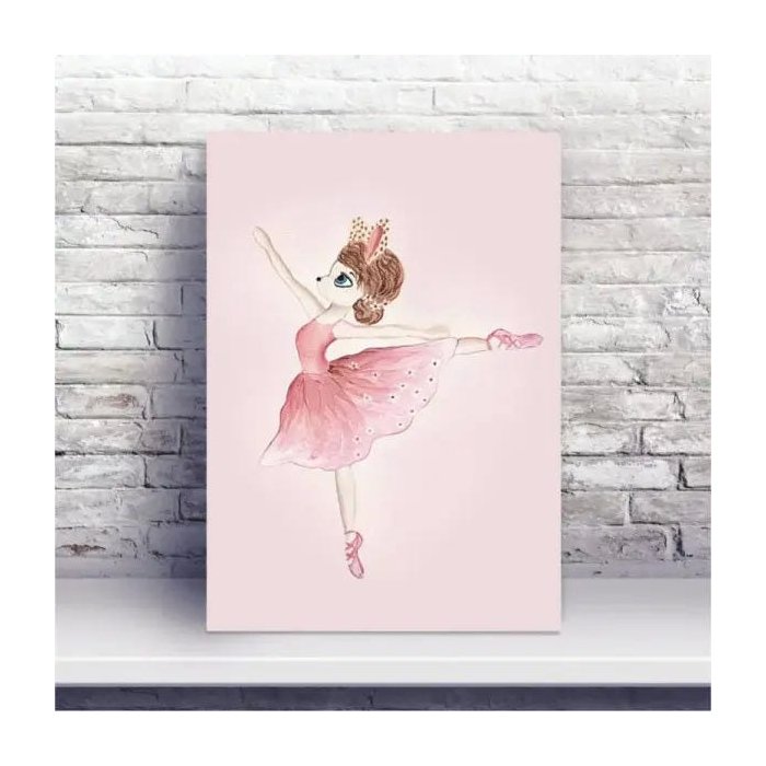 Placa MDF coelho bailarina fundo rosa
