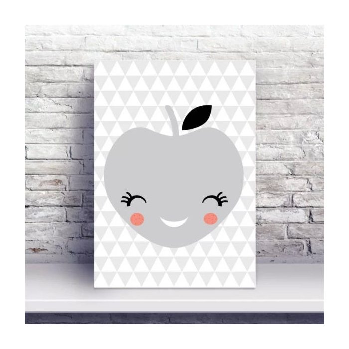 Placa decorativa, Placa MDF desenho fruta maçã cinza.