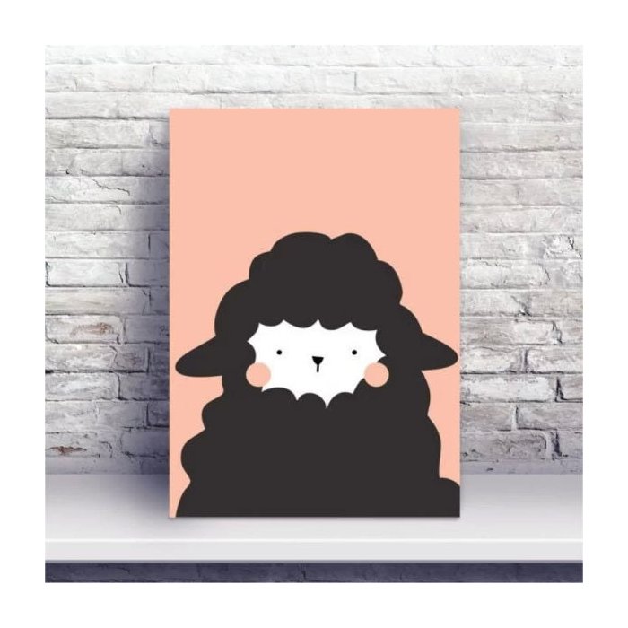 Placa MDF desenho ovelha preto e rosa