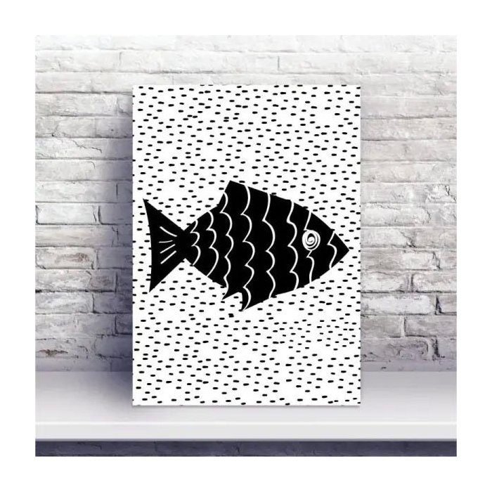 Placa decorativa, Placa MDF desenho peixe preto e branco.