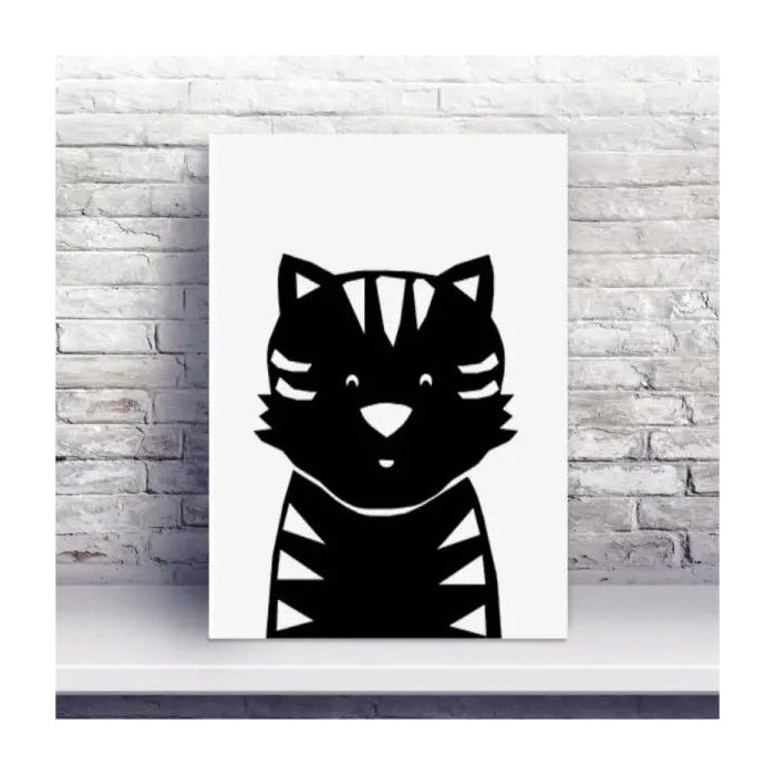 Placa decorativa, Placa MDF desenho tigre preto fundo branco.