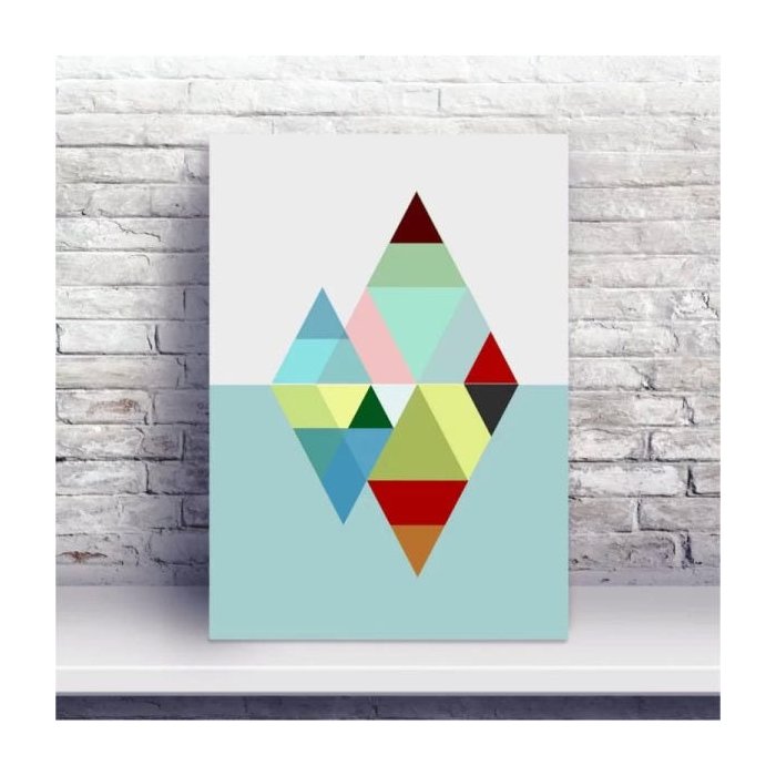 Placa decorativa, Placa MDF desenho triângulos coloridos.