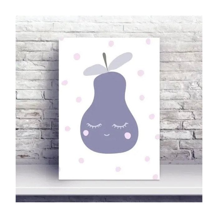 Placa decorativa, Placa MDF Fruta Pera Lilás.