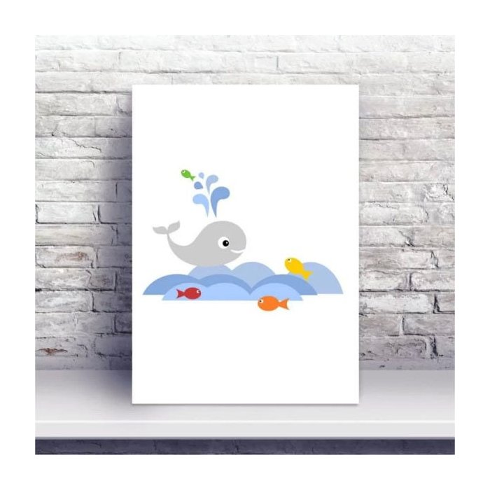 Placa decorativa, Placa MDF grande baleia peixes coloridos.