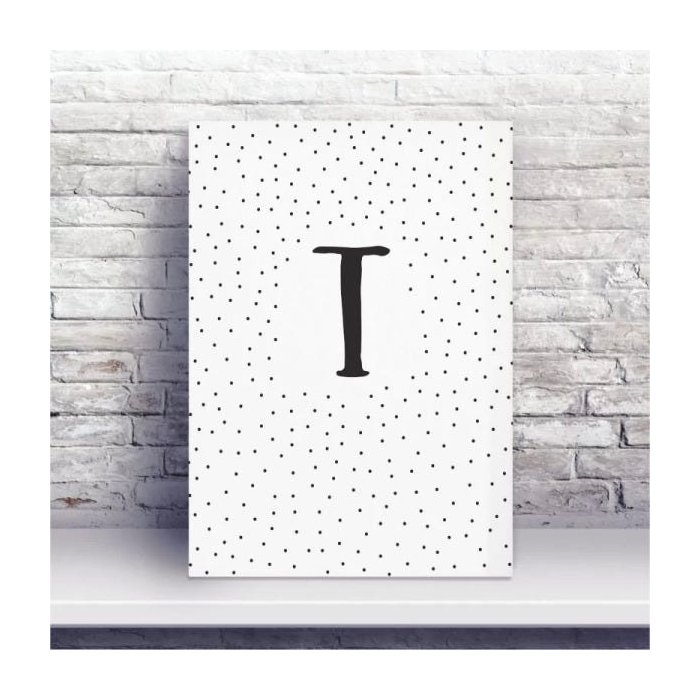 Placa decorativa, Placa MDF letra T bolinhas preta.