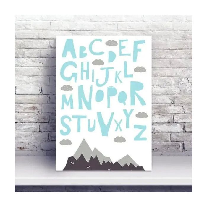 Placa decorativa, Placa MDF montanhas alfabeto azul.