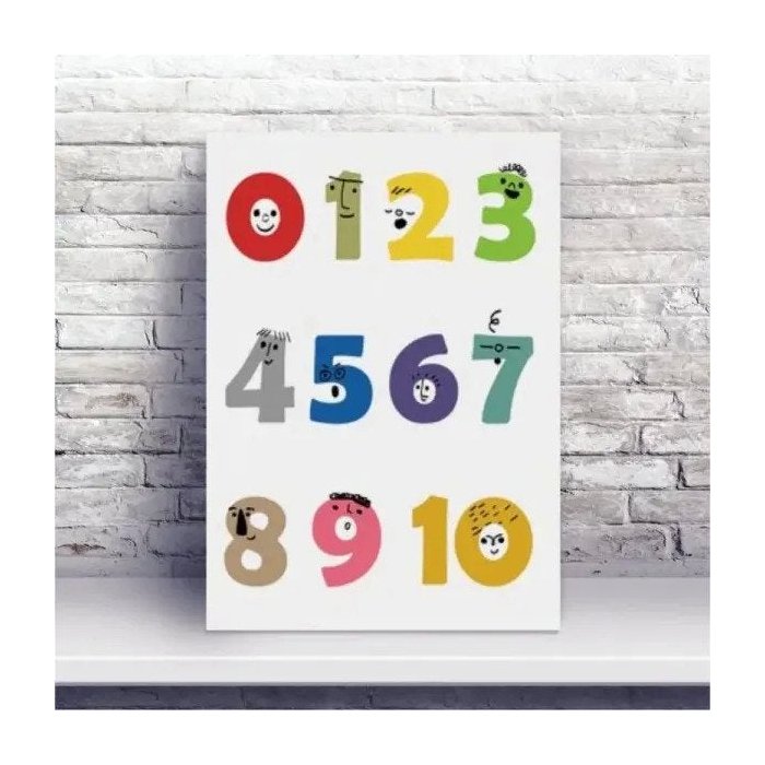 Placa MDF números e rostos coloridos