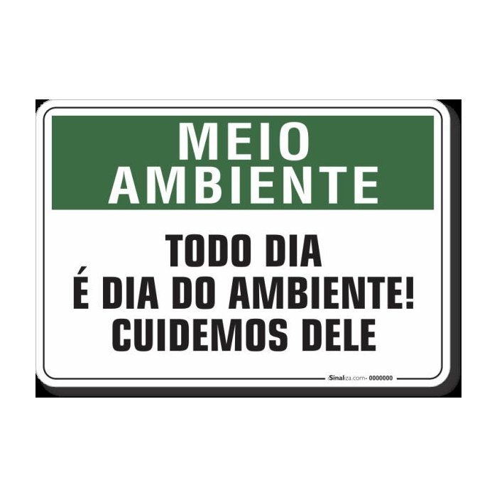 Placa Meio Ambiente Todo Dia É Dia do Ambiente! Cuidemos Dele