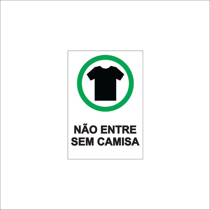 Placa - Não entre sem Camiseta - 20cm X 15cm