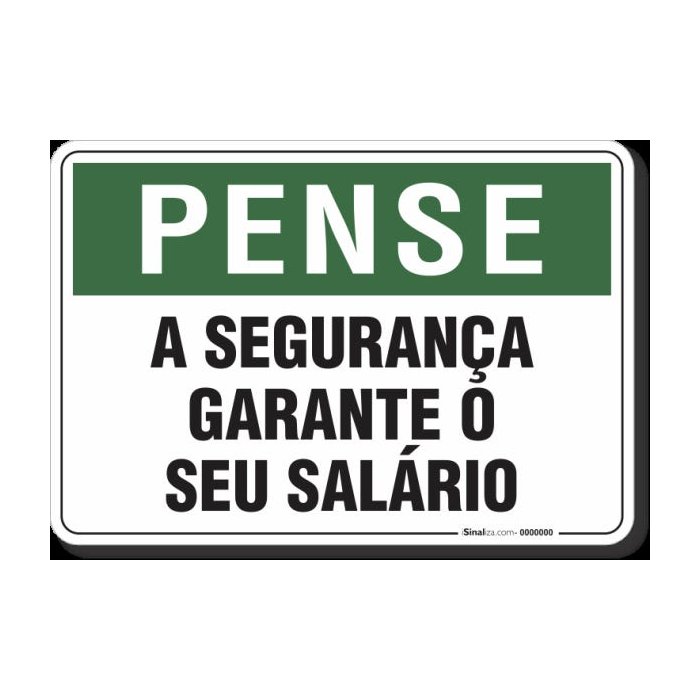 PLACA PENSE A SEGURANÇA GARANTE O SEU SALÁRIO