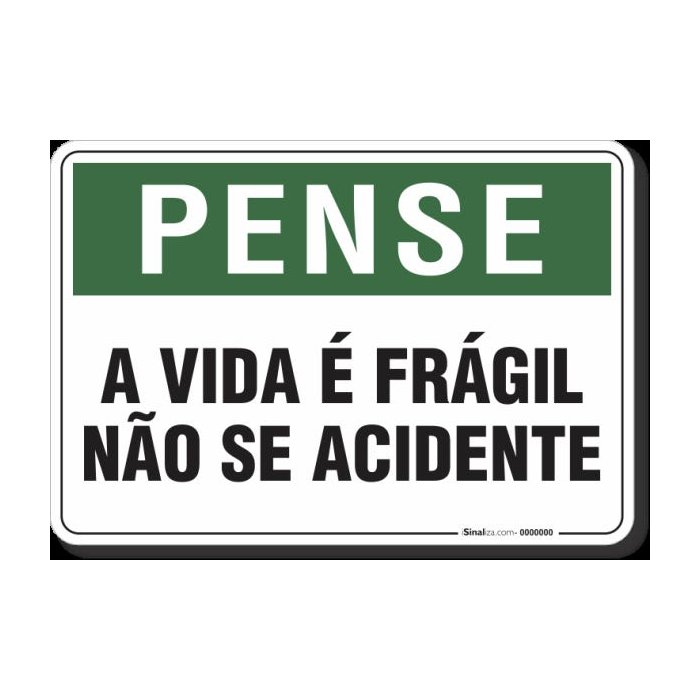 PLACA PENSE A VIDA É FRÁGIL NÃO SE ACIDENTE