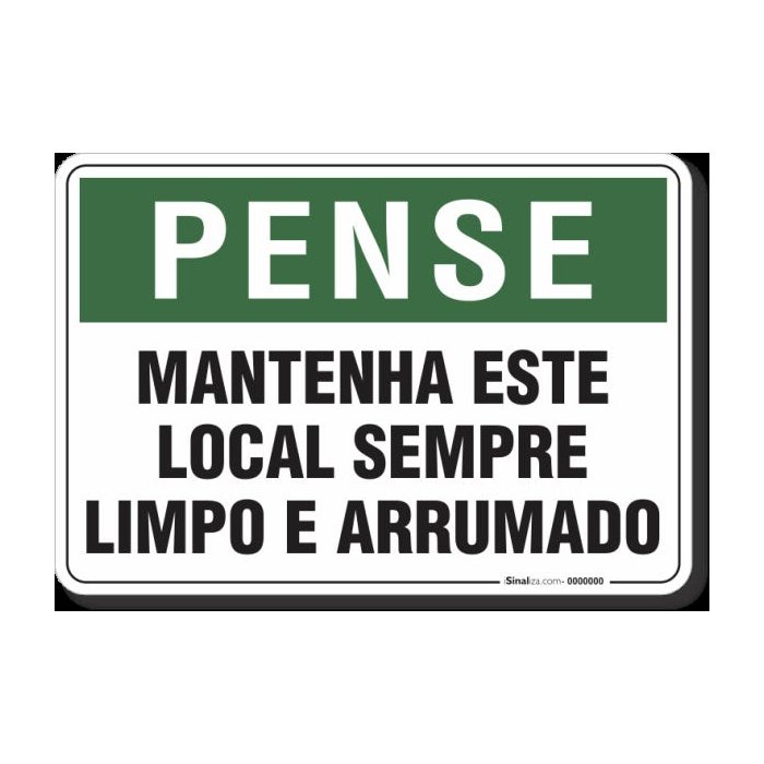 PLACA PENSE MANTENHA ESTE LOCAL SEMPRE LIMPO E ARRUMADO