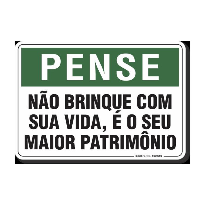 PLACA PENSE NÃO BRINQUE COM SUA VIDA
