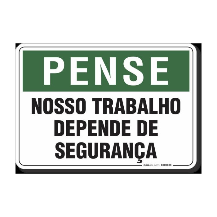 Garanta segurança e produtividade em sua empresa sinalizando corretamente com as placas de “PENSE” da iSinaliza.com. Disponíveis em diversos materiais e tamanhos, as placas estão de acordo com as Normas Regulamentadoras NR 10, NR 12, NR 19 e NR 26 do Ministério do Trabalho. Para simplificar a compreensão dos pictogramas, as placas iSinaliza.com estão todas em conformidade com o padrão de símbolos gráficos ISO. São utilizadas cores chamativas e textos que se destacam para facilitar o entendimento da placa, de acordo com as normas de segurança estabelecidas pela NBR 13434 da ABNT – Associação Brasileira de Normas Técnicas e com as Instruções de Trabalho estabelecidas pelo Corpo de Bombeiros.