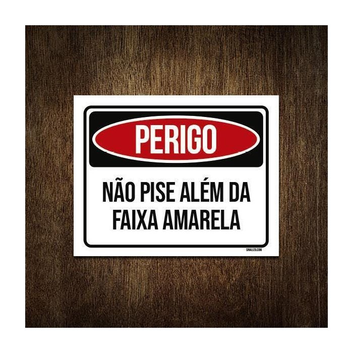 Placa Perigo Não Pise Além da Faixa Amarela 36x46