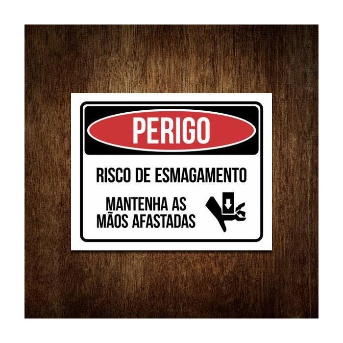 Placa Perigo Risco Esmagamento Mantenha Mãos Afastadas 36x46