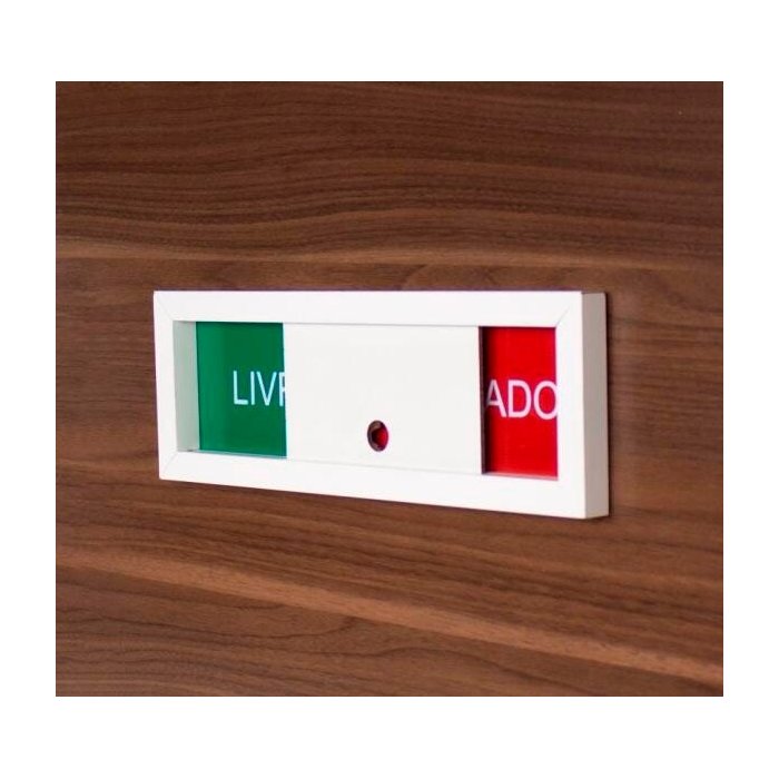 DESCRIÇÃO DO PRODUTOMoldura em MDF Branco.Placa Livre/Ocupado em PS Poliestireno 0,3mm, com adesivo Imprimax.Fabricado com Adesivos Imprimax (Gold Max – Com Durabilidade de até 08 Anos).Alta Durabilidade.Tamanho aprox..: 30x10cmA placa vai pronta para ser instalada.Acompanha fita dupla face.