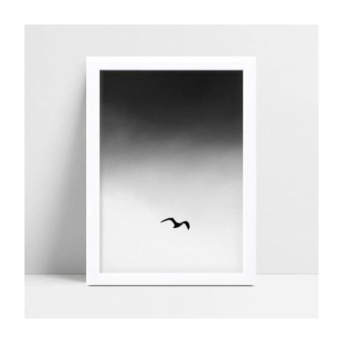 Quadro com moldura, placa poster infantil pássaro gaivota voando.
